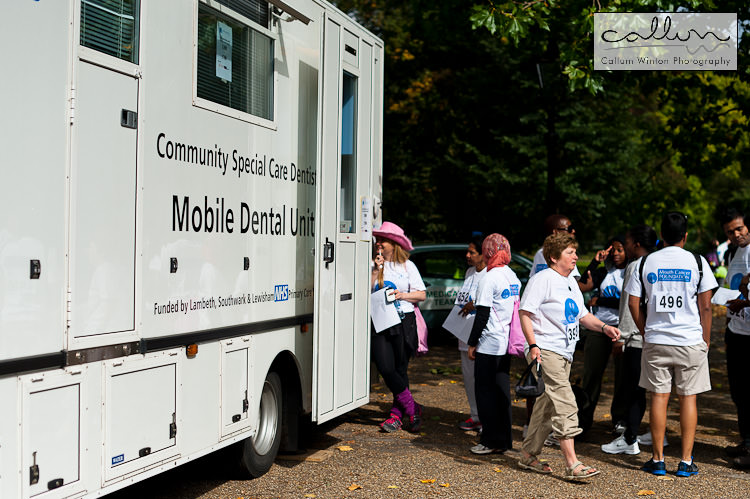 Queue for free screening at the 10k walk for the Mouth Cancer Foundation Charity