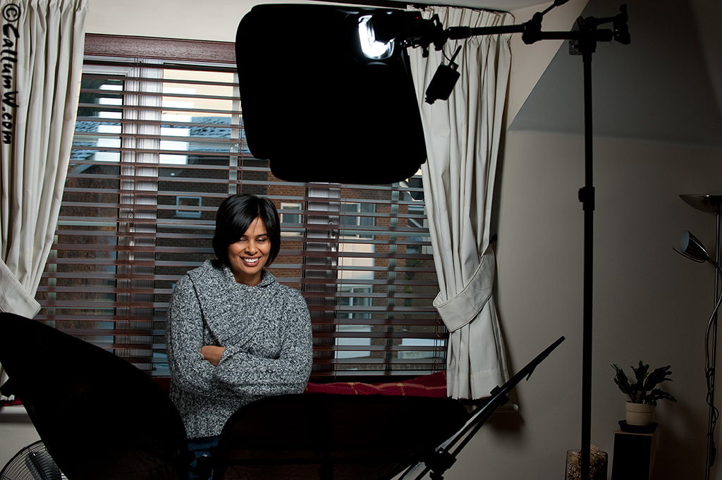 Got a whole bunch of new grip and lighting gear over the last few days and found a bit of time to do some basic testing in between paperwork to save my sanity before I go stir crazy. Managed to entice Prabha to stand in as model for the tests with promises of tea and cake as payment (she’s easily pleased 🙂 ) Here was the setup: